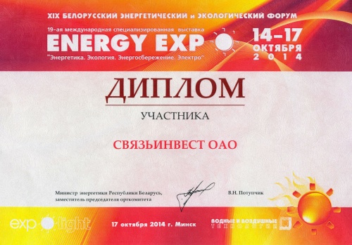 С 14 по 17 октября 2014 года ОАО «Связьинвест» приняло участие в XIX Белорусском энергетическом и экологическом форуме, в рамках которого состоялись XIX Международная специализированная выставка «Энергетика. Экология. Энергосбережение. Электро» («Энергетика-2014») и XIX Белорусский энергетический и экологический конгресс.